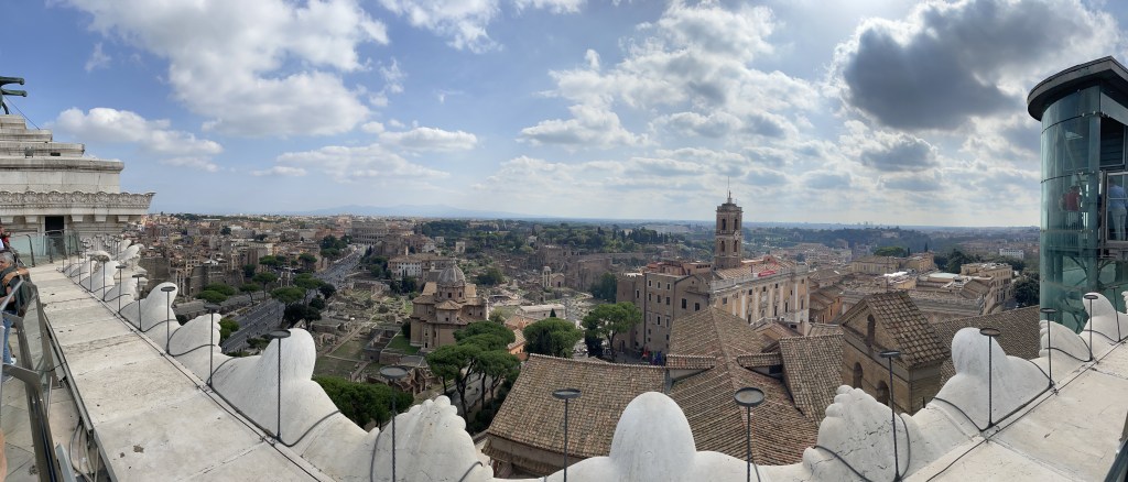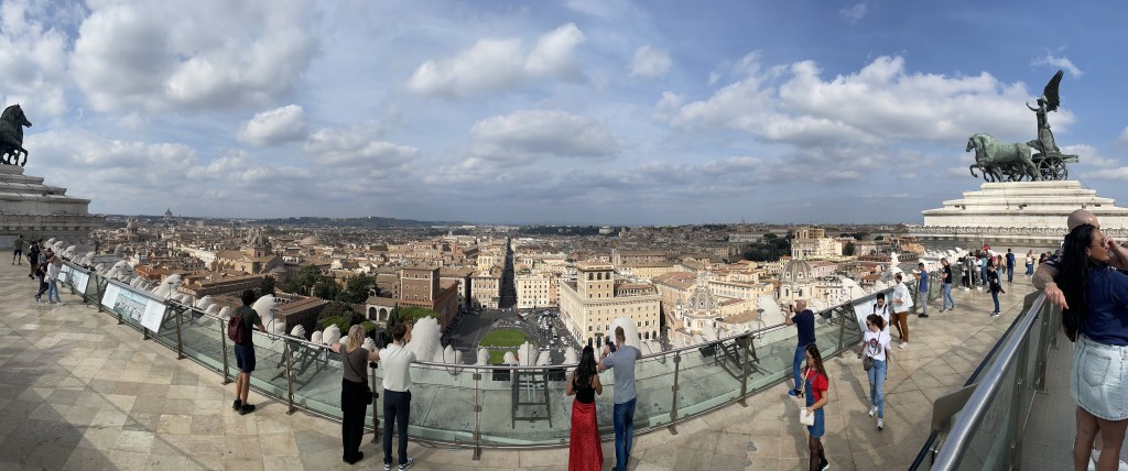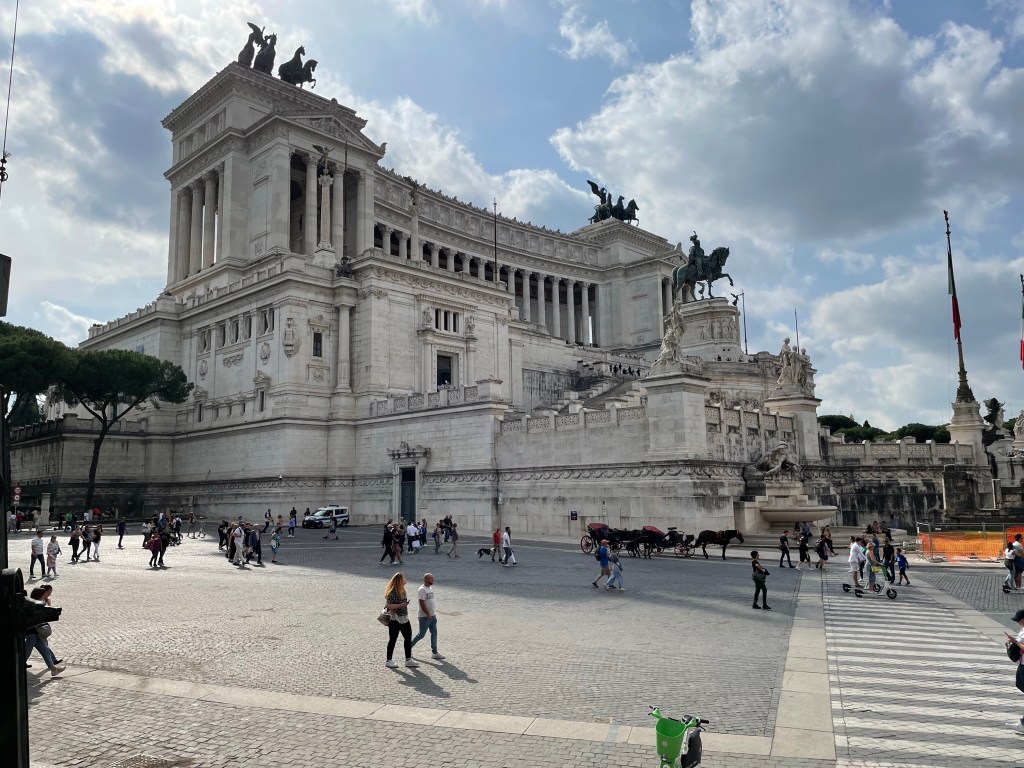The monument to Vitoria Emmanuel. The view from the top across the city is wonderful . The unification of Italy museum is well worth a visit .