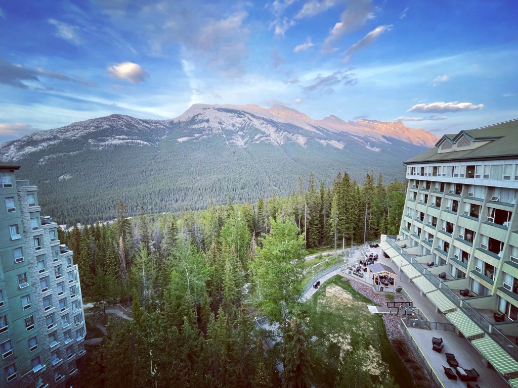 A long days travel from the UK flying from Edinburgh to Toronto, then to Calgary and pick up a hire car to drive to Banff . All the flights and organisation went just fine. First stop Banff – the Rimrock Hotel .