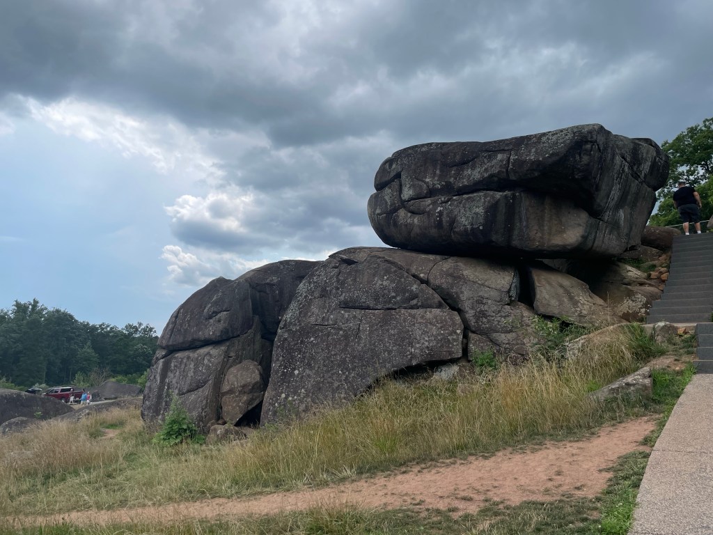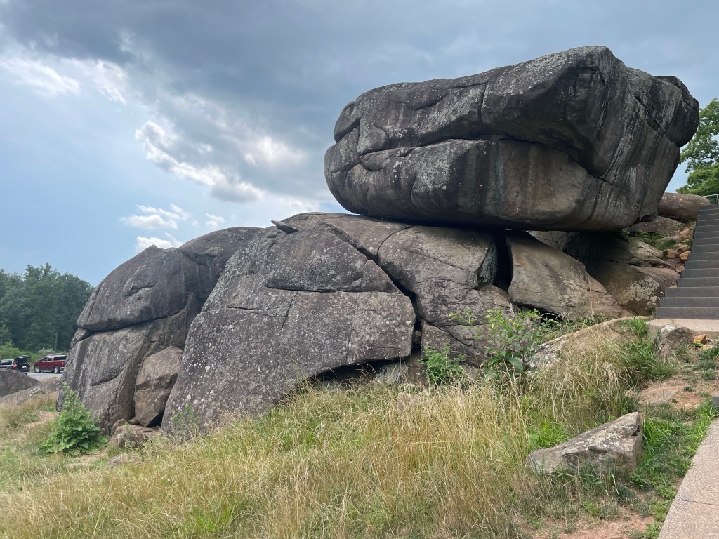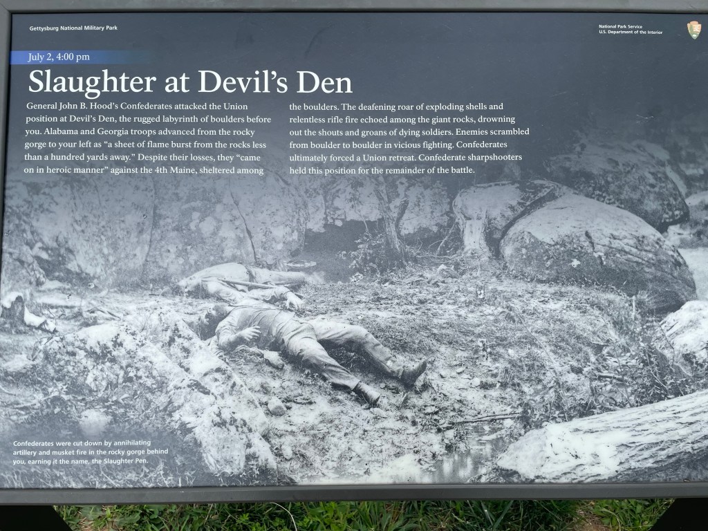Unfortunately there wasn’t any direct access to Little Roundtop due to ongoing maintenance works . We did however get down to the Devils Den . This was a lot closer to the Round Tops than I had realised . It also has some fantastic rock formations . They almost look as if they are just placed there by some giant .
