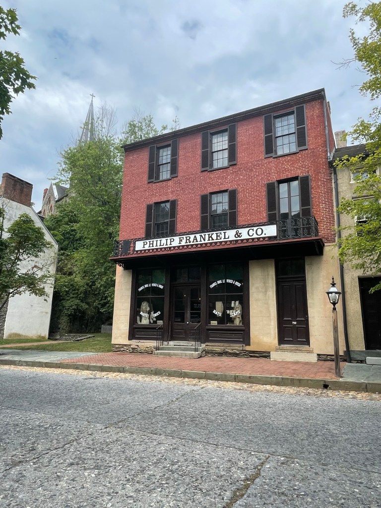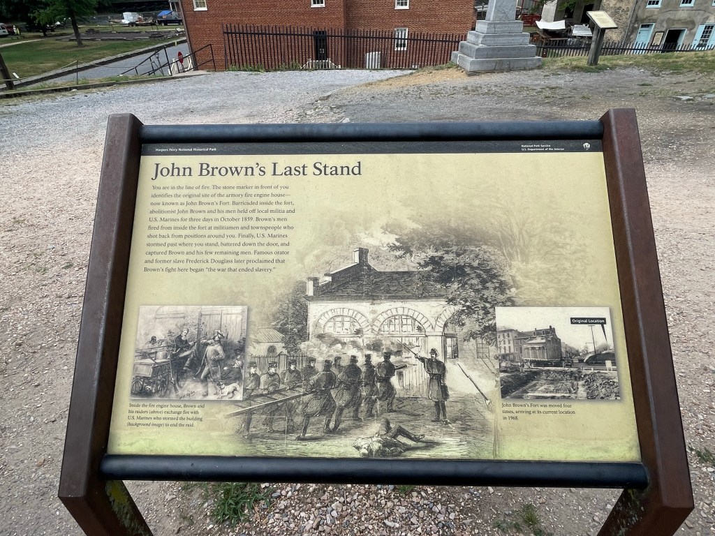 We worked our way down to Harpers Ferry . The town was the scene of the John Brown raid on the federal armoury there in 1859 to arm slaves. This was a precursor that fed in the civil war . it’s also known for its association with Lewis and Clark who were to explore in the interior of early Americas . Harpers Ferry is preserved as an historic town with various museums in the buildings – somewhat akin to Beamish in the UK .