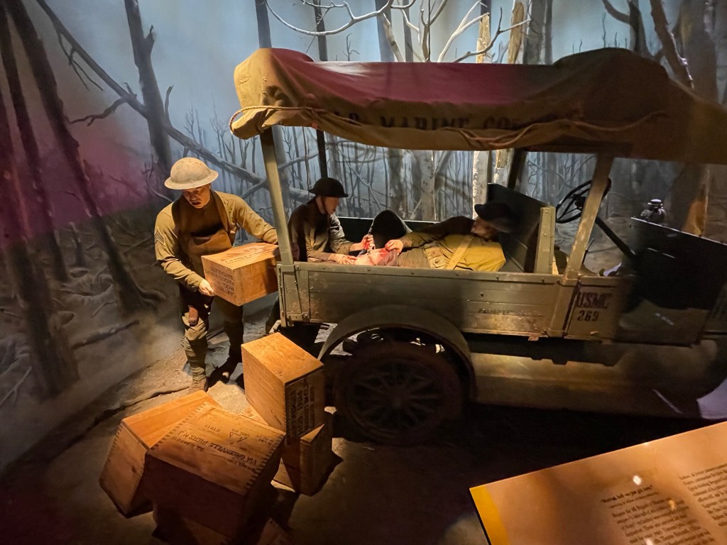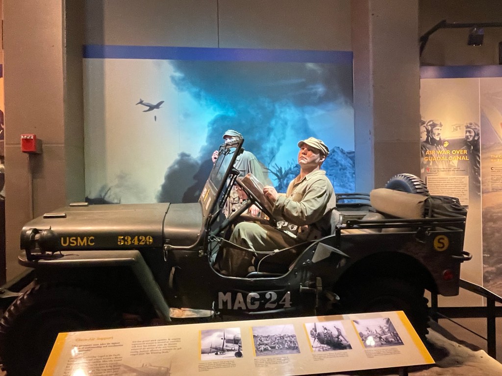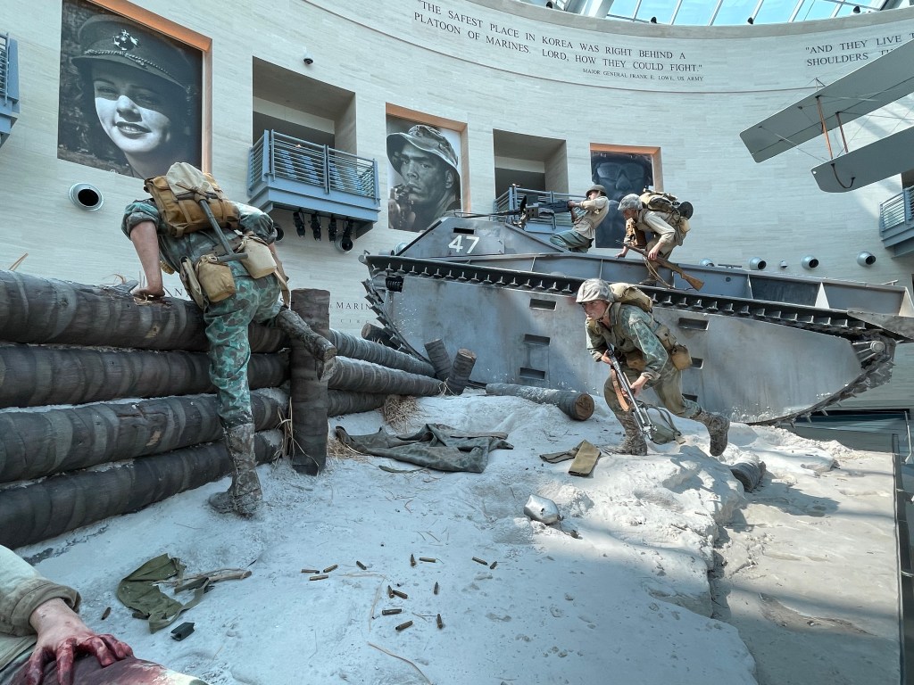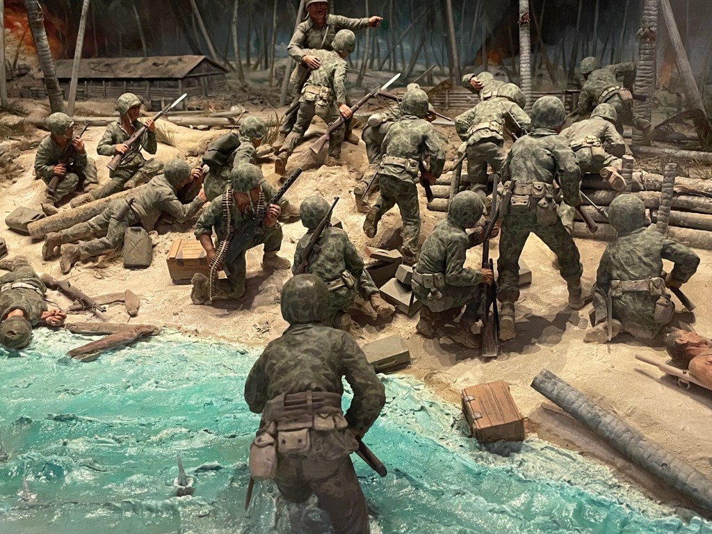 I think this is one of the very best military museums I have ever been to . It tells the story chronologically with various galleries . There was lots of actual kit , planes and vehicles. All of the mannequins were very life like . I was told they are modelled on Marines who fought /survived Tarawa in 1943 – but not sure how accurate this is as yet .